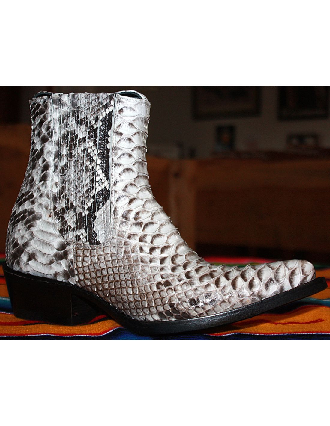La tige en peau de python et la doublure est en vachette.